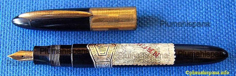 Modelo clásico en ebonita jaspeada, con plumín de 14 K y “sujetador”